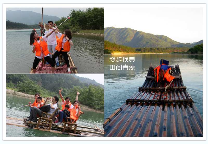 第二個項目,竹筏漂流。勞逸是要結合的,坐在竹筏上,雙腳浸在清澈見底的水中,看竹筏駛過,蕩開的漣漪層層疊疊,體會到什么叫移步換景,山間青蔥,讓人想一直就這么飄蕩下去。